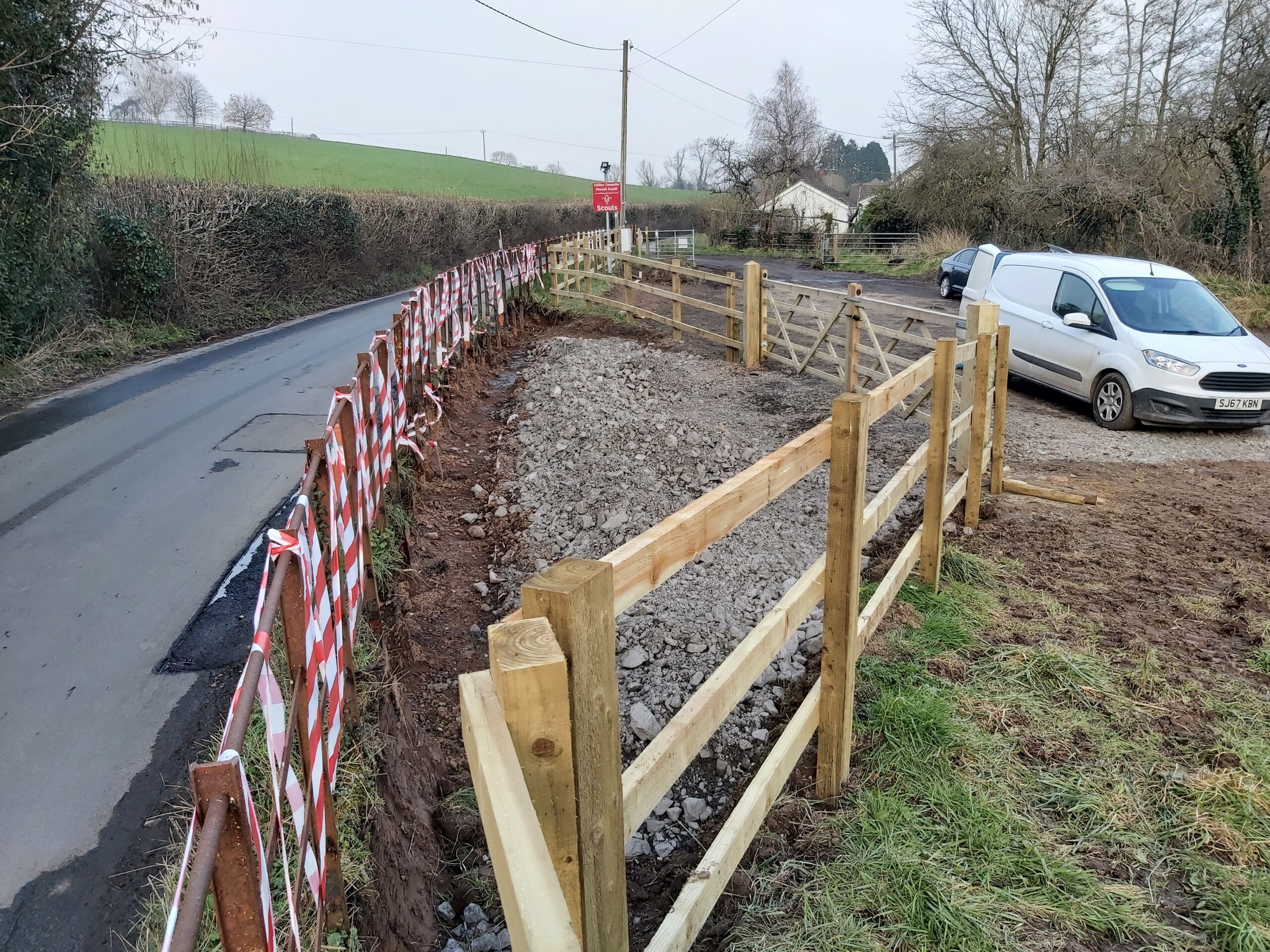 - More parking provision is being created by removing part of the bank along the fence line and closing off the old entrance.