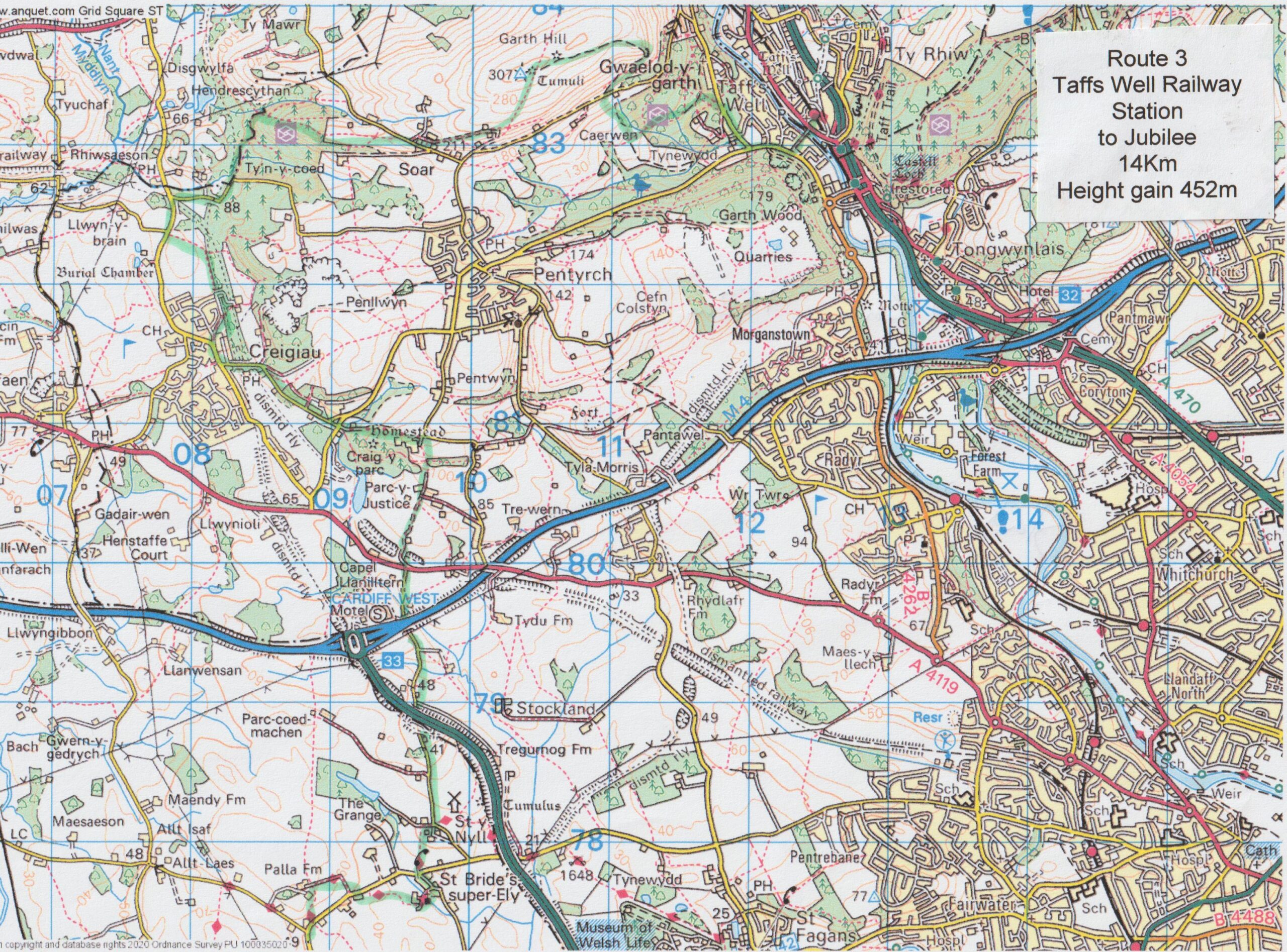 This is a strenuous route as it climbs the Garth Mountain. There is a footbridge near the station that allows the crossing of the Taff. The route follows part of the Rhymney Ridge walk